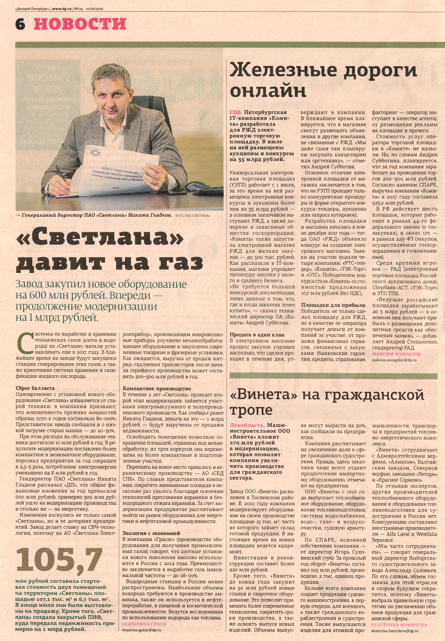 В «Деловом Петербурге» вышла статья «Железные дороги онлайн».