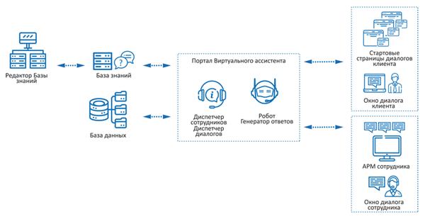 ПО «Виртуальный ассистент» (Свидетельство Роспатента №2019662968, включено в Реестр отечественного ПО № 7758) обеспечивает сокращение времени оказания квалифицированной помощи в условиях увеличения количества обращений. Чат-бот нового поколения существенно облегчает и упрощает процесс круглосуточного обслуживания клиентов, расширяет воронку продаж, снижает затраты на содержание службы поддержки или колл-центра. Виртуальный ассистент используется для внутрикорпоративного взаимодействия, оптимизирует бизнес-процессы. В условиях пандемии COVID-19 чат-бот становится дополнительным каналом информирования и медицинского обслуживания населения с возможностью оперативного анализа ситуации на официальных сайтах исполнительных органов государственной власти.